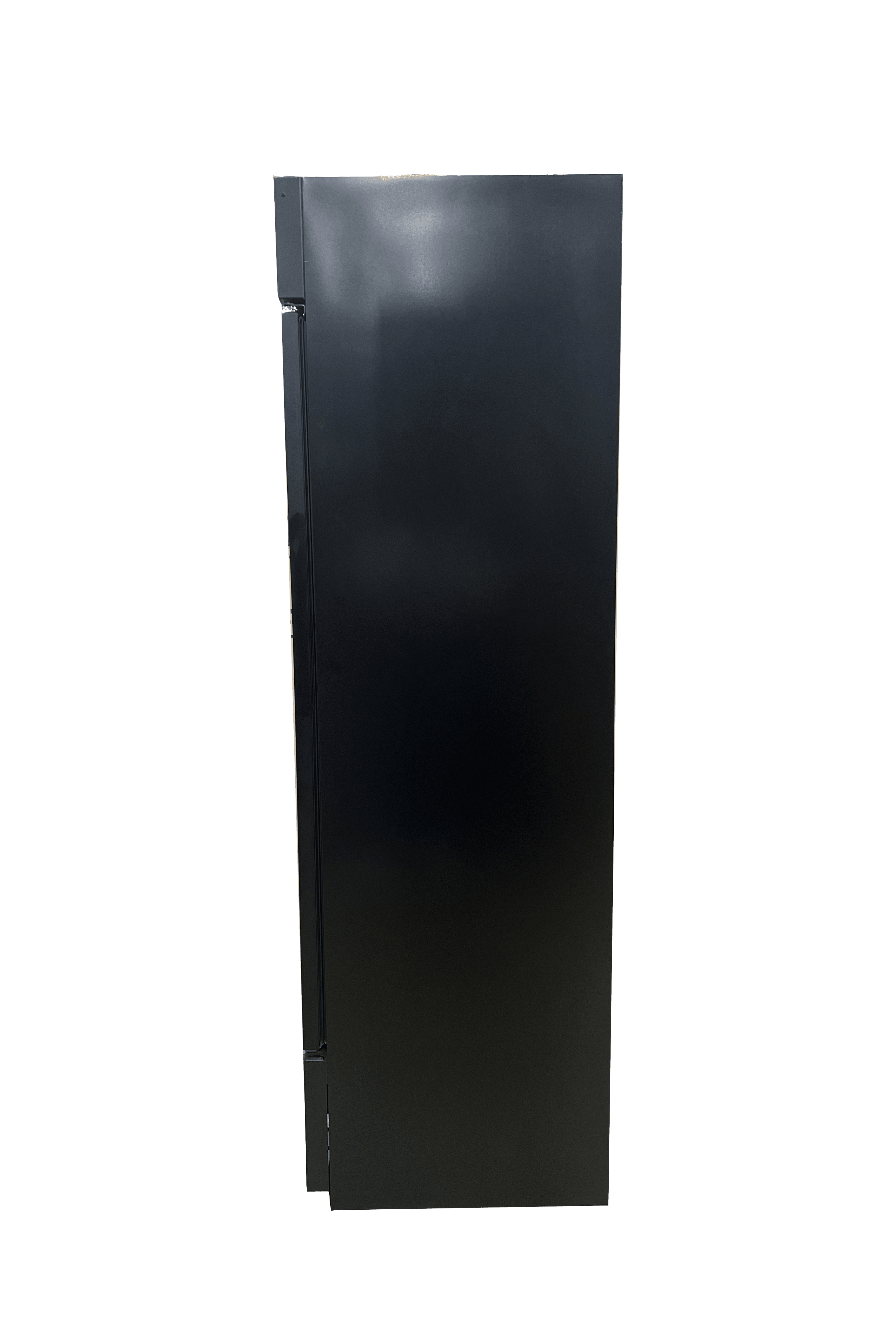 Premium Slimline Single Door Cold Space Merchandiser® with maximum storage in a compact two foot square footprint. Features Sparkling LED illuminated merchandising. Ideal for tight spaces such as kiosks in food courts and end-aisle placements, where cold product merchandising is essential. This model can be built-in top, bottom, rear and both sides.
