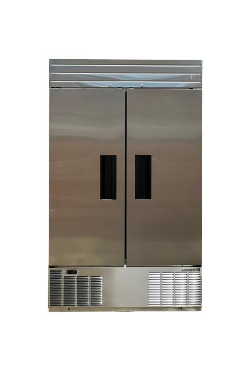 Refrigerator designed for high-capacity cold storage. Ideal for installations requiring a larger volume of cold product readily at hand. Solid Stainless Steel Xterior™ promotes a clean, professional image. Authentically front-breathing, this model can be built-in top, bottom, rear and both sides. Dent on RHS panel -